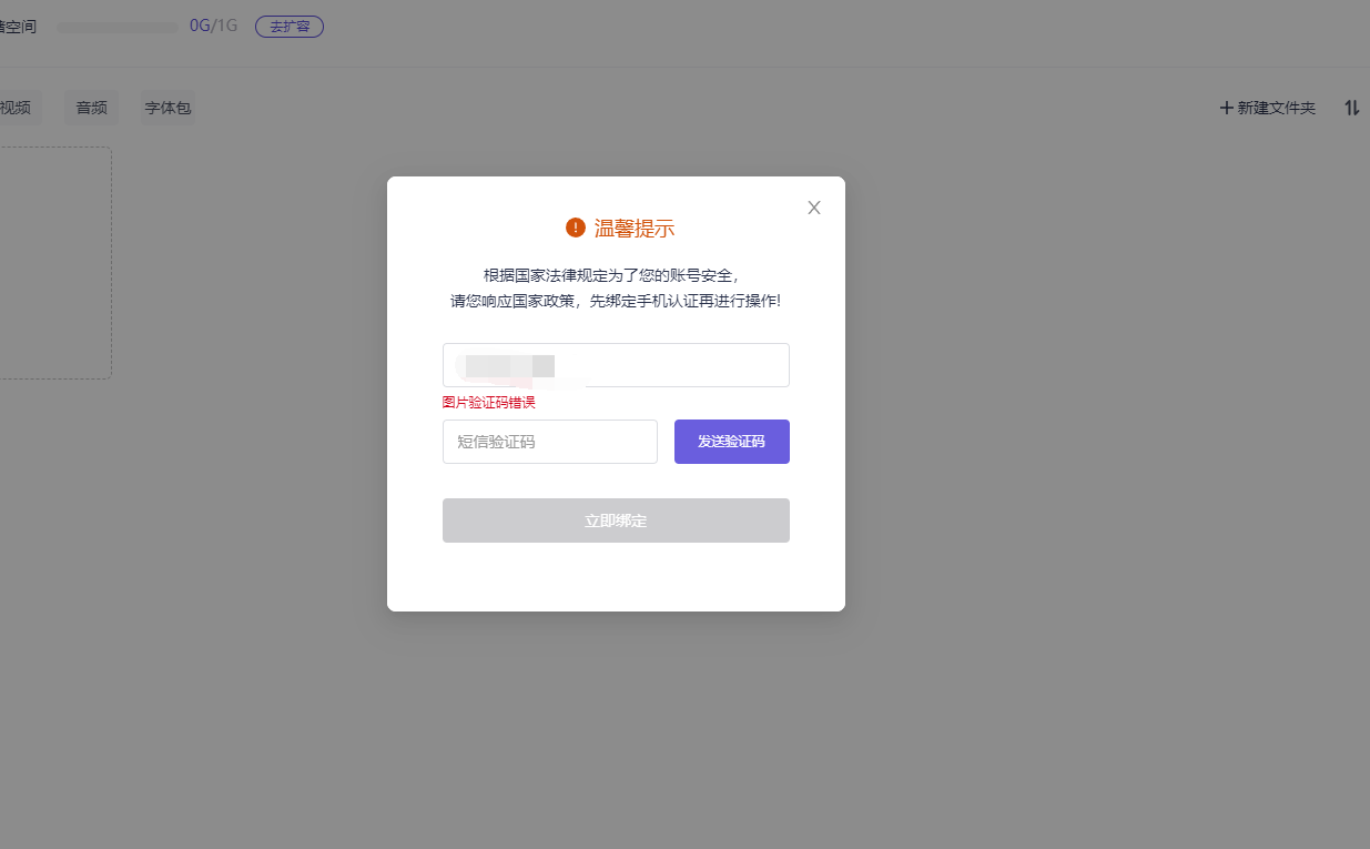 但素材只能用里面已经有的内容,如果我需要上传自己的素材,比如logo等等,是需要绑定手机号的,然后,我开始了绑定。文章源自www.xlme.cn川渝圈-https://www.xlme.cn/675.html