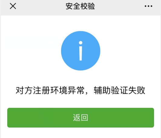 第一、二、三、四次:好友辅助验证时,提示如此,对方注册环境异常,辅助验证失败,如图。(将二维码发给别人扫时)